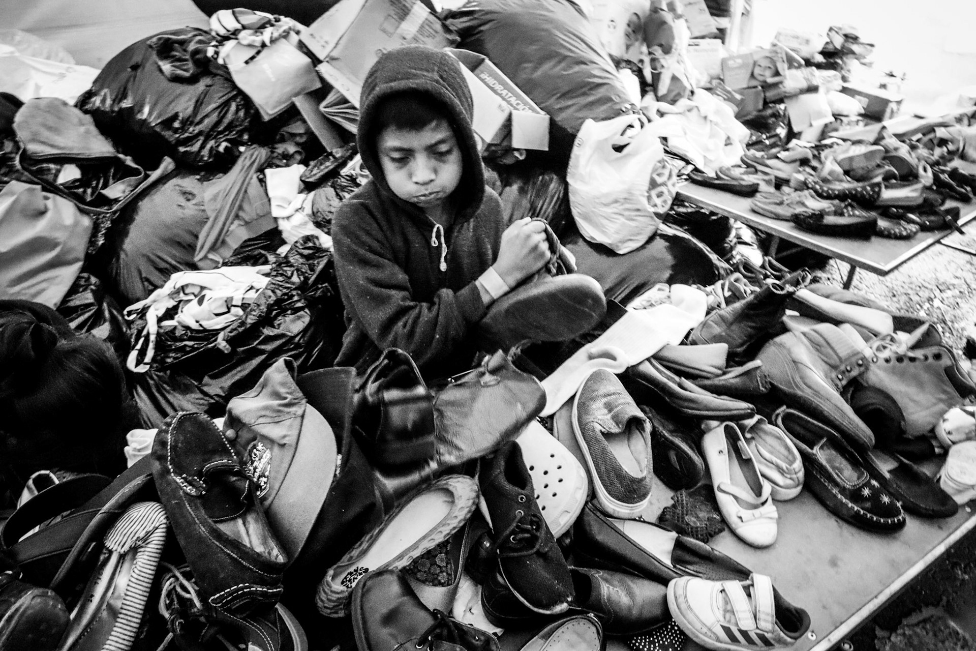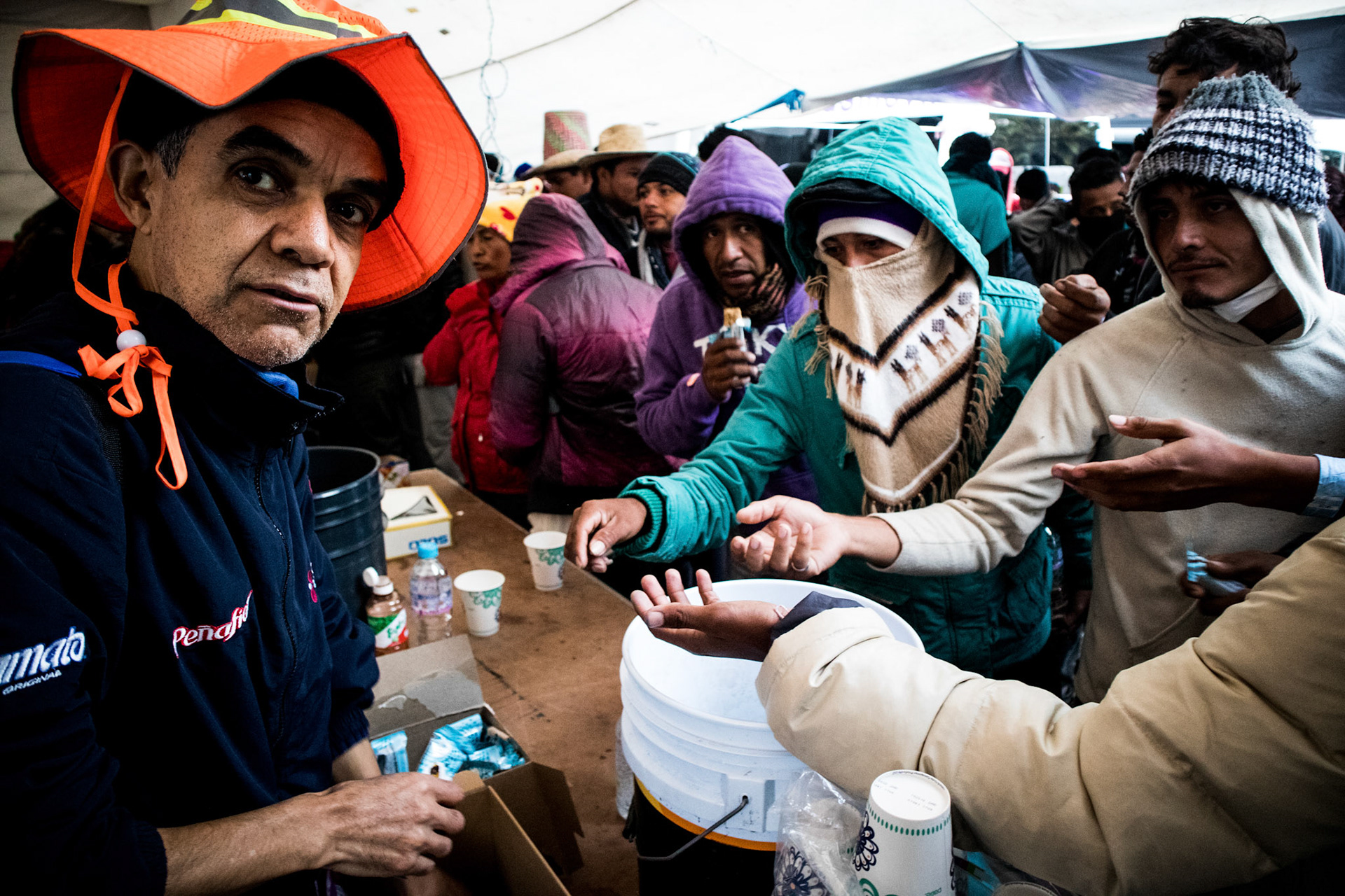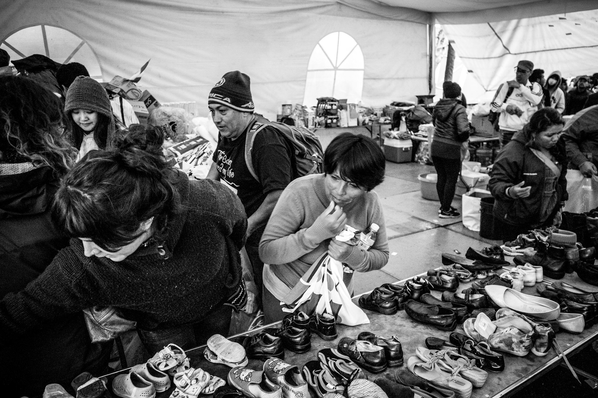 Volunteers donate goods and time to help immigrants from Central America on their journey to the United States. Here in Mexico City the caravan receives food, clothes, shoes and other services.