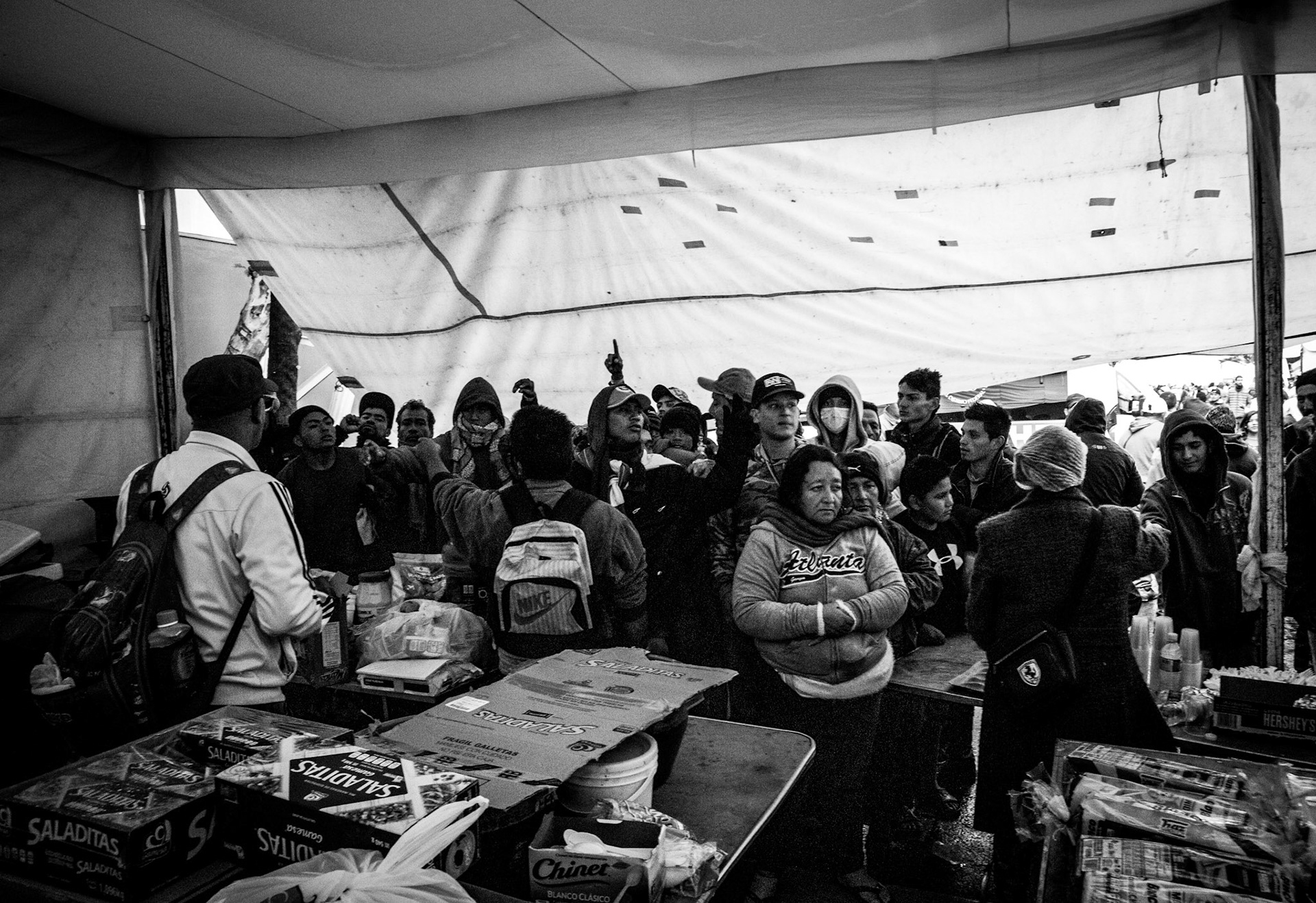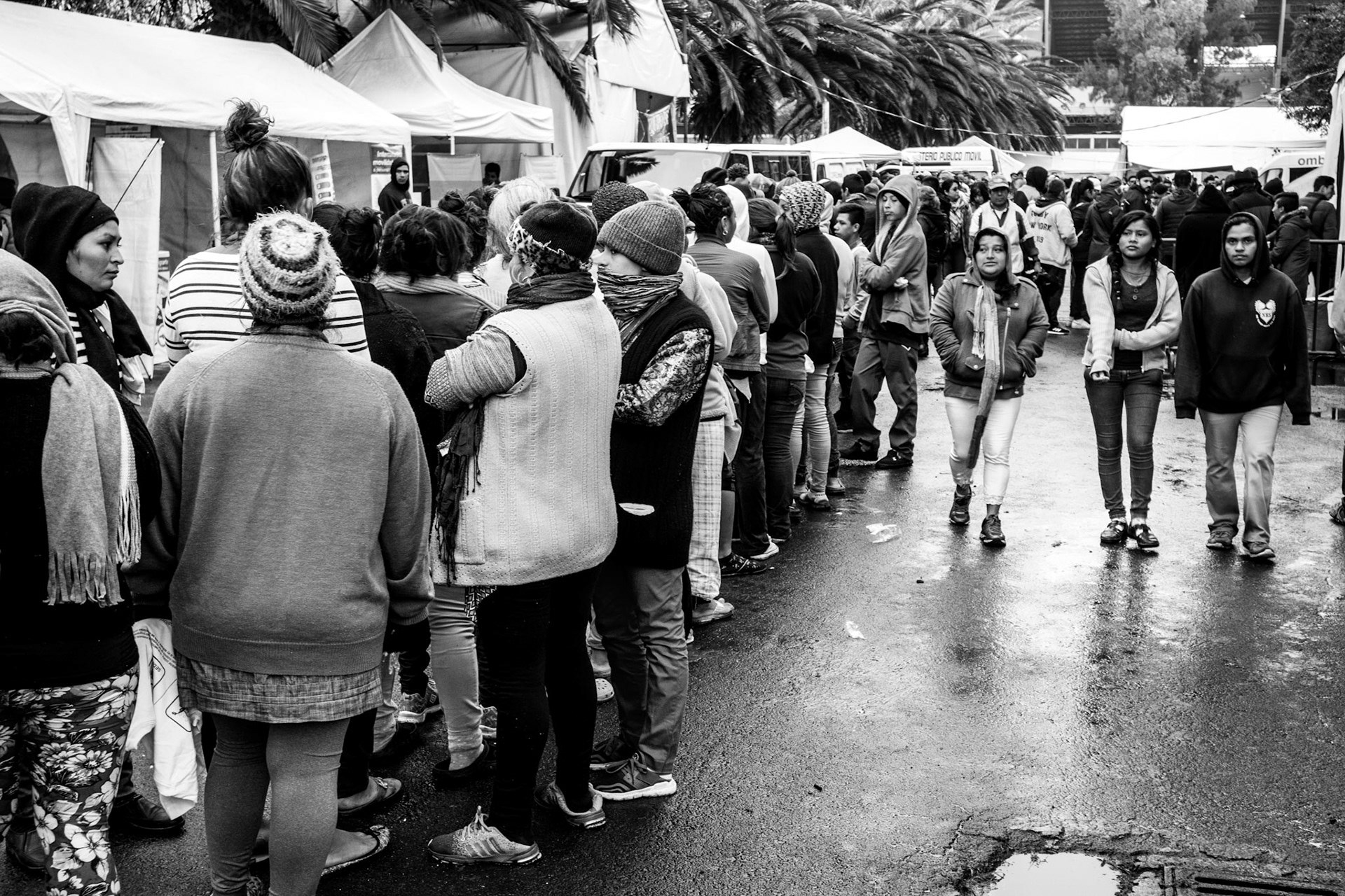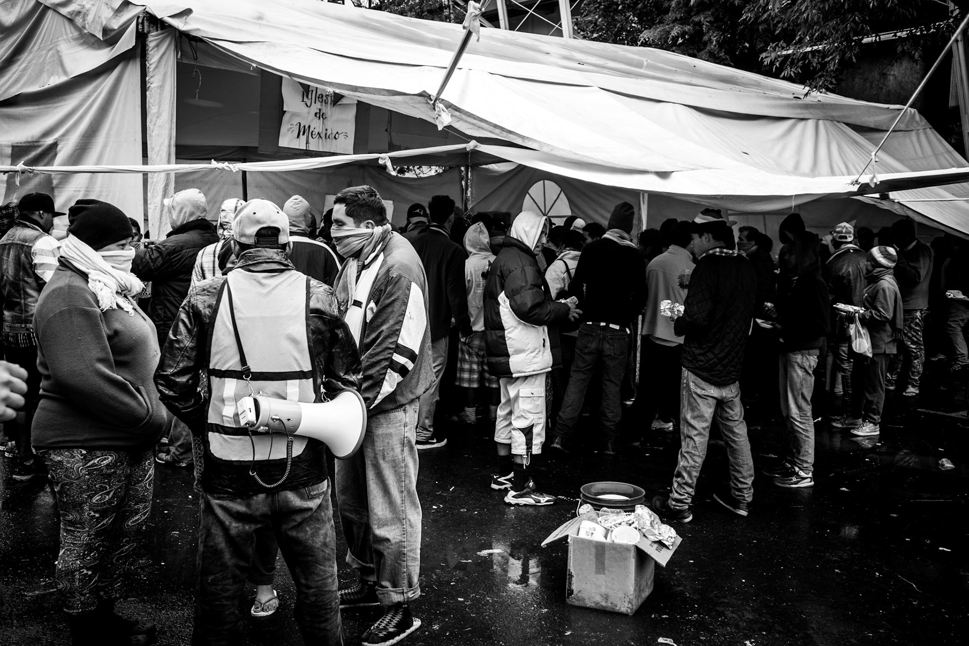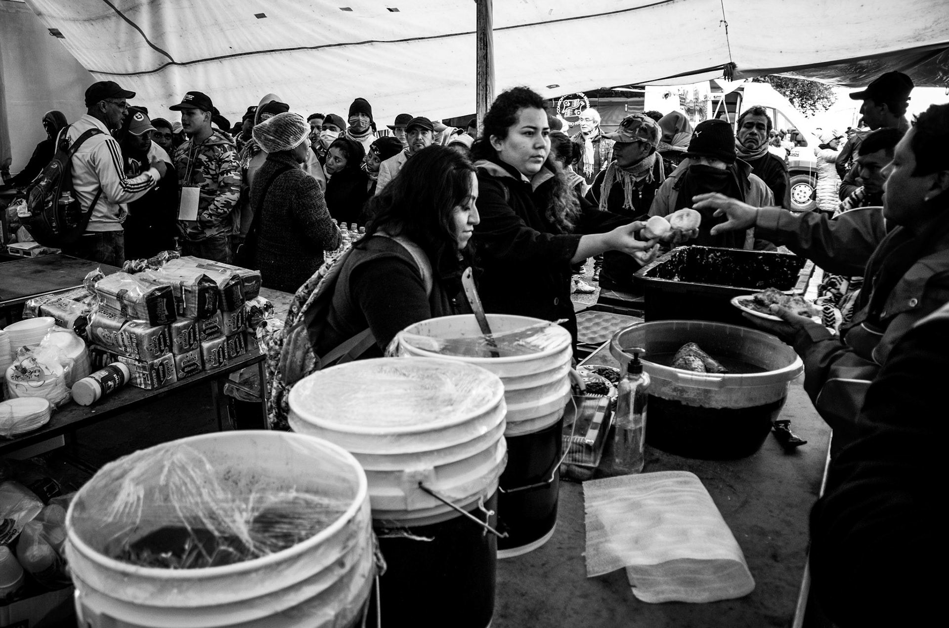 Volunteers donate goods and time to help immigrants from Central America on their journey to the United States. Here in Mexico City the caravan receives food, clothes, shoes and other services.
